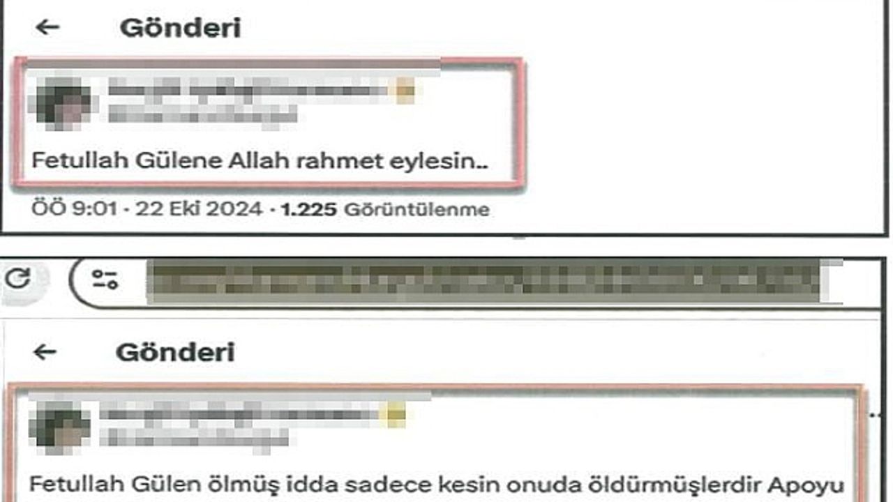 İstanbul Cumhuriyet Başsavcılığınca yürütülen soruşturmada, sosyal medya üzerinden FETÖ/PDY terör örgütünün propagandasını yaptıkları belirlenen 8 şüpheli hakkında gözaltı kararı verildi. Savcılık talimatıyla harekete geçen İstanbul Terörle Mücadele Şube Müdürlüğü ekipleri, FETÖ elebaşı Fetullah Gülen''in ölümü sonrası sosyal medyada övücü paylaşımlarda bulunan ve örgütün propagandasını yapan kişilerin yakalanması için operasyon düzenledi. İstanbul''da birçok adrese yapılan eş zamanlı baskınlarda aranan 8 kişi yakalandı. Gözaltına alınan şüpheliler, sorgulanmak üzere emniyete götürüldü. Zanlıların polisteki ifade işlemlerinin ilerleyen saatlerde başlayacağı öğrenildi.