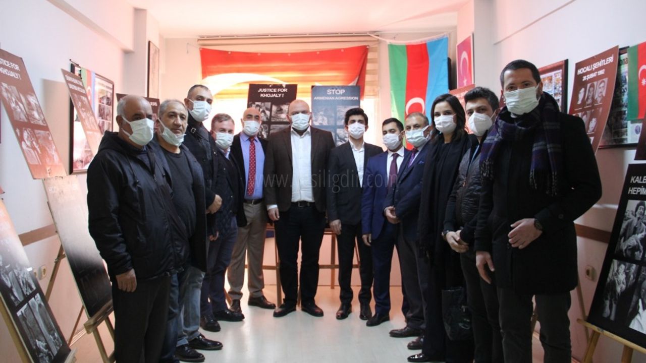 Düzenlenen sergide konu hakkında geniş bir açıklama yapan İSTAD-İstanbul Türkiye Azerbaycan Dayanışma ve Kültür Derneği Genel Başkanı Sefer Karakoyunlu, Hocalı Soykırımı"nın tarihte hiçbir zaman unutulmayacak acılardan biri olduğunun vurgusunu yaparken, “20. yüzyılın en büyük soykırımı Hocalı Soykırımının 29. yıl dönümündeyiz.  Türk Dünyası 25 Şubat"ı 26 Şubat"a bağlayan gece can Azerbaycan"ın Karabağ bölgesi Hocalı kasabasında en acı gününü yaşadı. Bir gecede binlerce soydaşımız yok edildi bunlardan 613 kişi korumasız çocuk, kadın ve yaşlılardan oluşmaktaydı. Bu gece tarihe kara bir leke olarak yazıldığı gibi, yüzyılın en kara günü olarak da bilinmektedir.  Biz bu soykırımın tarihin tozlu raflarına kaldırılmasına asla izin vermeyeceğiz. Bu dava bizim milli davamızdır. 2 yılda kaybettiğimiz toprakları 44 günde geri aldık bu büyük zaferden dolayı Azerbaycan Cumhurbaşkanı İlham Aliyev''i, kahraman Azerbaycan ordusunu ve halkını tebrik ediyor, şehitlerimize rahmet diliyoruz. "dedi.