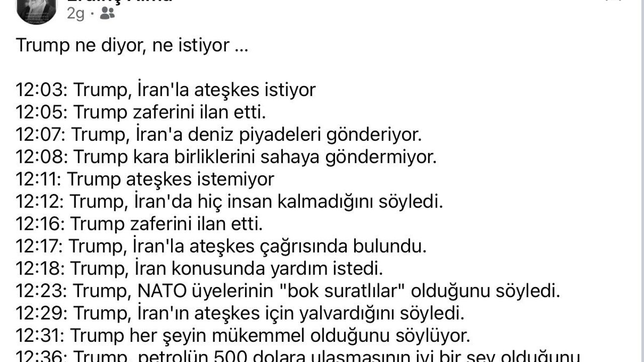 ABD–İsrail–İran savaşını başlatan Trump, ne dediğini bilmiyor. Şizofreni hastası gibi o an aklına ne geliyorsa onu telaffuz ediyor.