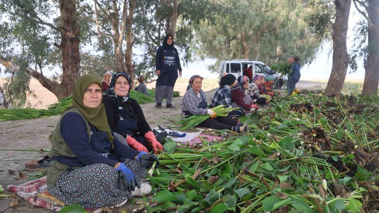 Su sümbüllerini ayıklayıp dekoratif ürünlere dönüştürdüklerini ifade eden Fatma Açık, "Su sümbüllerini arkadaşlar getiriyorlar. Buradaki arkadaşlarımız sümbülleri ayıklayıp bizlerin önüne geliyor. Biz de çöplerinden ve yapraklarından ayırıp diğer arkadaşlara veriyoruz ve onlar da bağlıyorlar. Buradan yükleyip tesise götürüp kurutuluyor. Kuruyan su sümbülleri, halk eğitim merkezindeki kadınların ellerine ulaşıyor. Kadınların ellerinde su sümbülleri; çanta, sepet ve saksı gibi dekoratif ürünlere dönüşüyor. Burada çalışarak aileme destek oluyorum. Bu işten dolayı Başkanımız Mehmet Öntürk’e teşekkür ederiz. Arkadaşlarla hem konuşuyoruz hem de işimizi yapıyoruz" dedi.