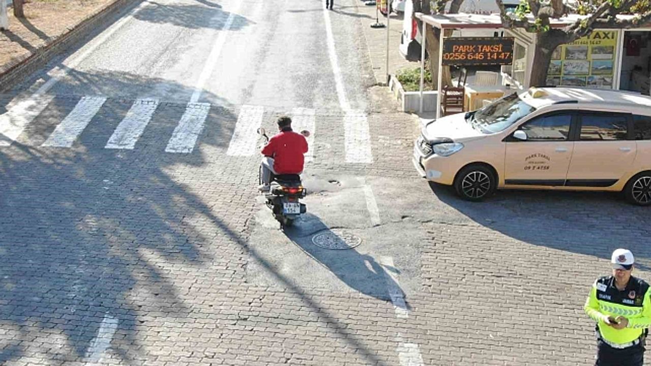 Kuşadası İlçe Jandarma Komutanlığı Trafik Jandarması tarafından Güzelçamlı Mahallesi''nde Asayiş Timleri ile birlikte trafik denetimi gerçekleştirdi. Drone destekli yapılan denetimlerde ise emniyet kemeri, motosiklet sürücülerinin koruma başlığı (kask) kullanımı ve yaya önceliği konuları kontrol edildi. Kurallara uymadığı tespit edilen 13 sürücüye ise toplam 11 bin 415 TL trafik idari para cezası uygulandı. Trafik Jandarması tarafından sürücülere yönelik denetimlerin aralıksız devam edeceği öğrenildi.