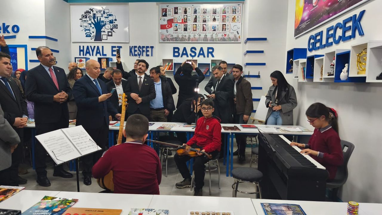 Aynı zamanda bir beceri ve etkinlik sınıfı olarak tasarlanan alanda öğrenciler, sınıfta yer alan müzik enstrümanlarıyla katılımcılara kısa bir dinleti de sundu.