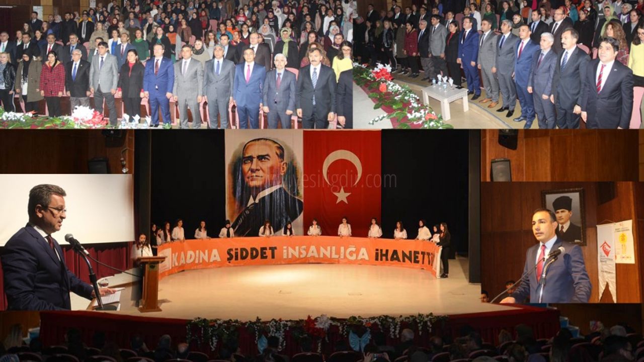 Programda kanuşan Vali Ünlü; ''''Kadına yönelik şiddete karşı harekete geçmek öncelikle bu olgunun özgül durumunun bilincine varmak ve önemini kavramaktan geçiyor. İnsan hakları mücadelesinde, kadına yönelik her türlü ayrımcılığı; emeğine, bedenine ve kimliğine yönelik şiddeti reddediyor, demokrasiye ve eşit yurttaşlığa gönülden bağlı herkesi omuz omuza mücadeleye çağırıyoruz.Kültürümüzde kadına yüce bir varlık gözüyle bakılmıştır. Böyle bir kültüre ve töreye hayran olmamak elde değildir. Kadın bereketin simgesidir. Benimsediğim bir söz var ki hem toplumdaki hem de aile kavramındaki yerini açıklar niteliktedir. O söz şöyledir; “ev toprağın üzerine kurulmaz, bir kadın üzerine kurulur.” Evi ev yapan duvarı tuğlası değildir. Evi ev yapan, bizâtihi kadının kendisidir.93 Harbinde Ruslarla mücadele eden Nene Hatun ile başlayan Türk Kadınının memleketi düşmanlardan kurtarma azmi Milli Mücadele''de had safhaya ulaşmıştır. Milli mücadele kadın kahramanları yüzyıllar geçse de unutulmayacak isimlerdir.