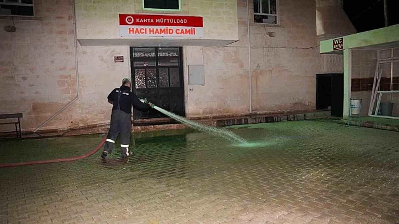 Adıyaman''ın Kahta ilçe Belediyesi İtfaiye Müdürlüğü ekipleri, kentteki camilerin dış alanlarında kapsamlı bir temizlik çalışması başlatarak, ibadet alanlarını daha temiz ve hijyenik hale getiriyor.