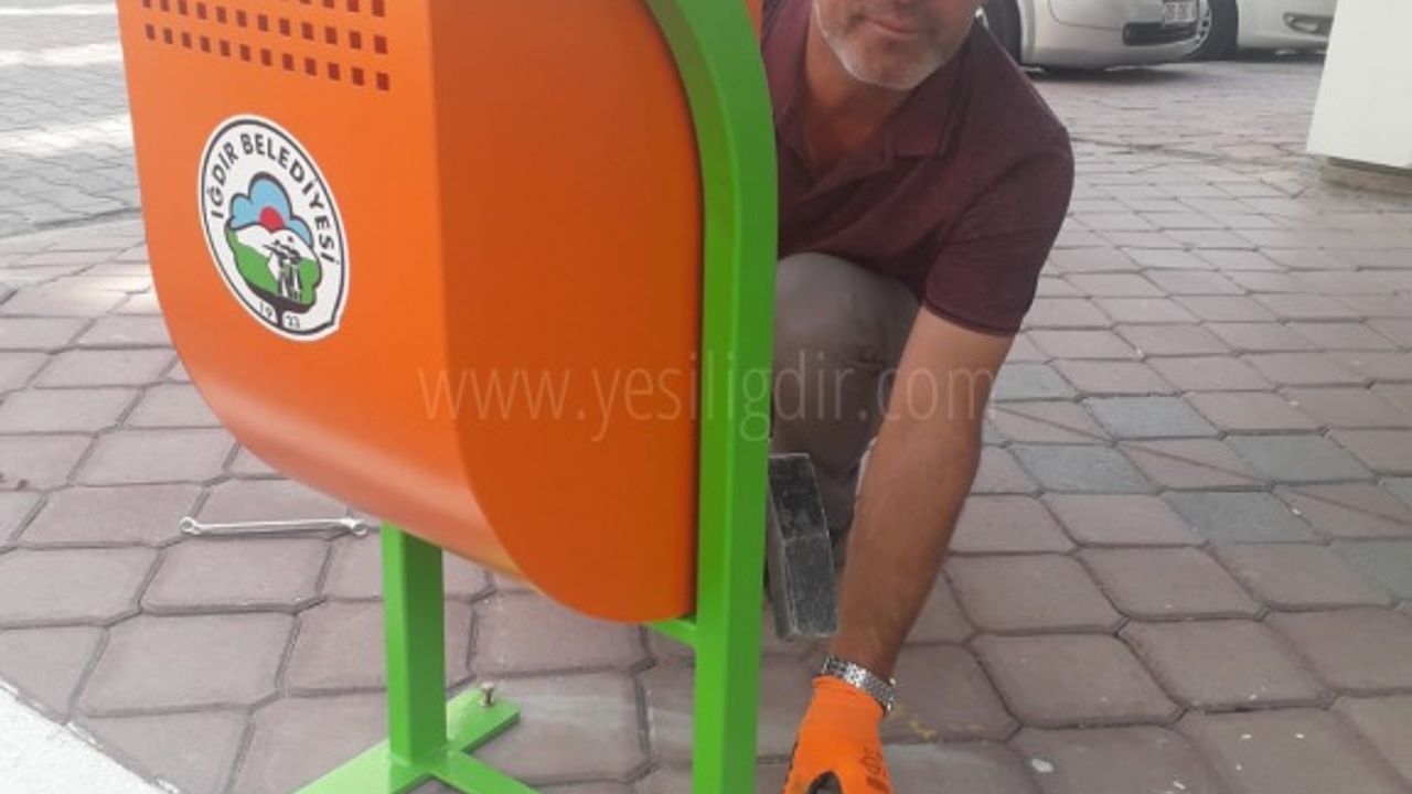 Iğdır belediyesi tarafından şehrin muhtelif noktalarına ayaklı çöp kutusu bırakılıyor.