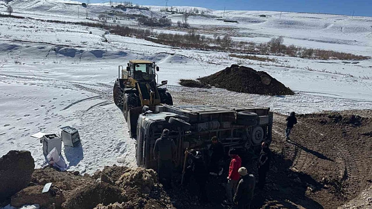Van''ın Başkale ilçesinde kontrolden çıkan kamyon şarampole yuvarlanırken, sürücüsü yara almadan kurtuldu.