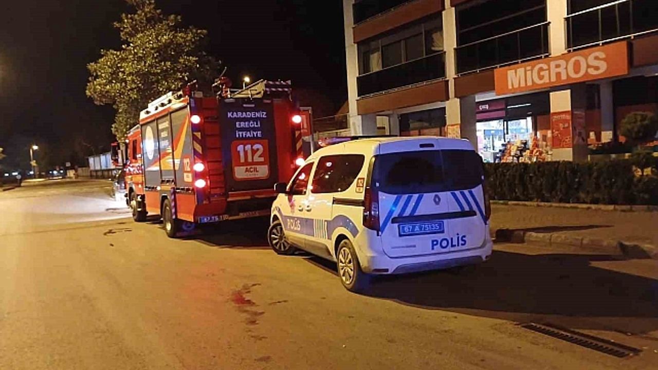Yangın, Karadeniz Ereğli ilçesinde gece saatlerinde meydana geldi. Migros''un bulunduğu binanın alt katında dumanların yükseldiğini fark eden vatandaşlar durumu 112 Acil Çağrı Merkezi''ne bildirdi. Kısa sürede olay yerine itfaiye ve polis ekipleri sevk edildi. Yangın, itfaiyenin müdahalesiyle büyümeden kontrol altına alındı. Polis çevrede güvenlik önlemleri alırken olayda herhangi bir yaralanma veya can kaybı yaşanmadığı öğrenildi. Yangının çıkış nedeni araştırılıyor.