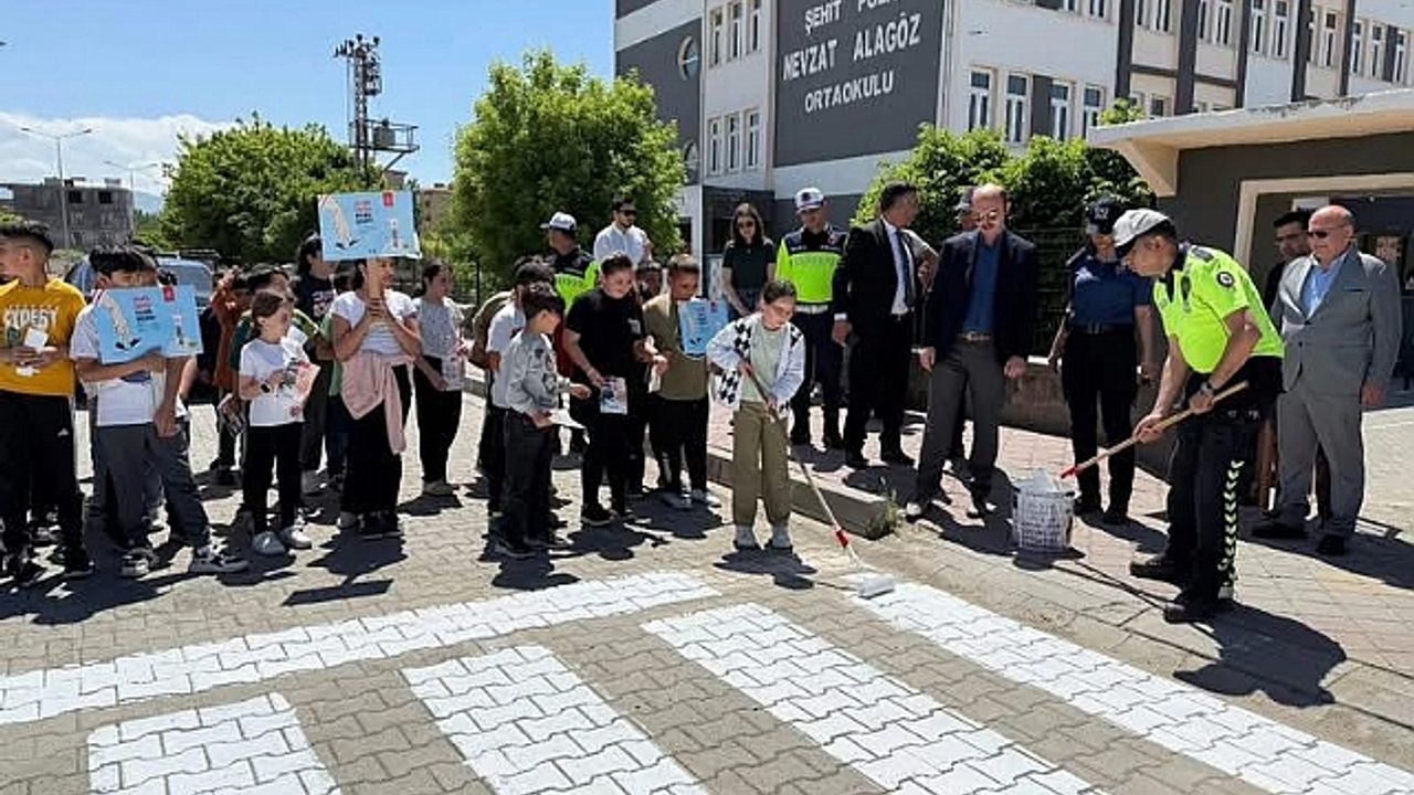 Etkinlikte “Bir Kural Bir Ömür” mottosuyla Şehit Polis Nevzat Alagöz Ortaokulu önünde bulunan yaya geçitleri boyanarak hem öğrencilerin hem de vatandaşların dikkatini çekmek amaçlandı. Katılımcılara trafik kuralları, yaya güvenliği, trafik işaretlerinin anlamı ve emniyet kemeri kullanımının önemi anlatıldı.