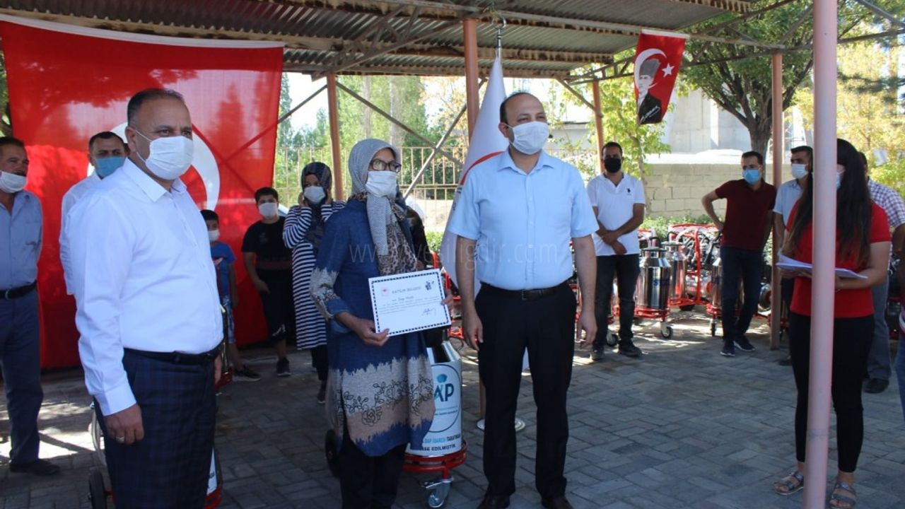 dileklerinde bulunarak, Süt sağım makinelerini ve eğitim belgelerini teslim ettiler.