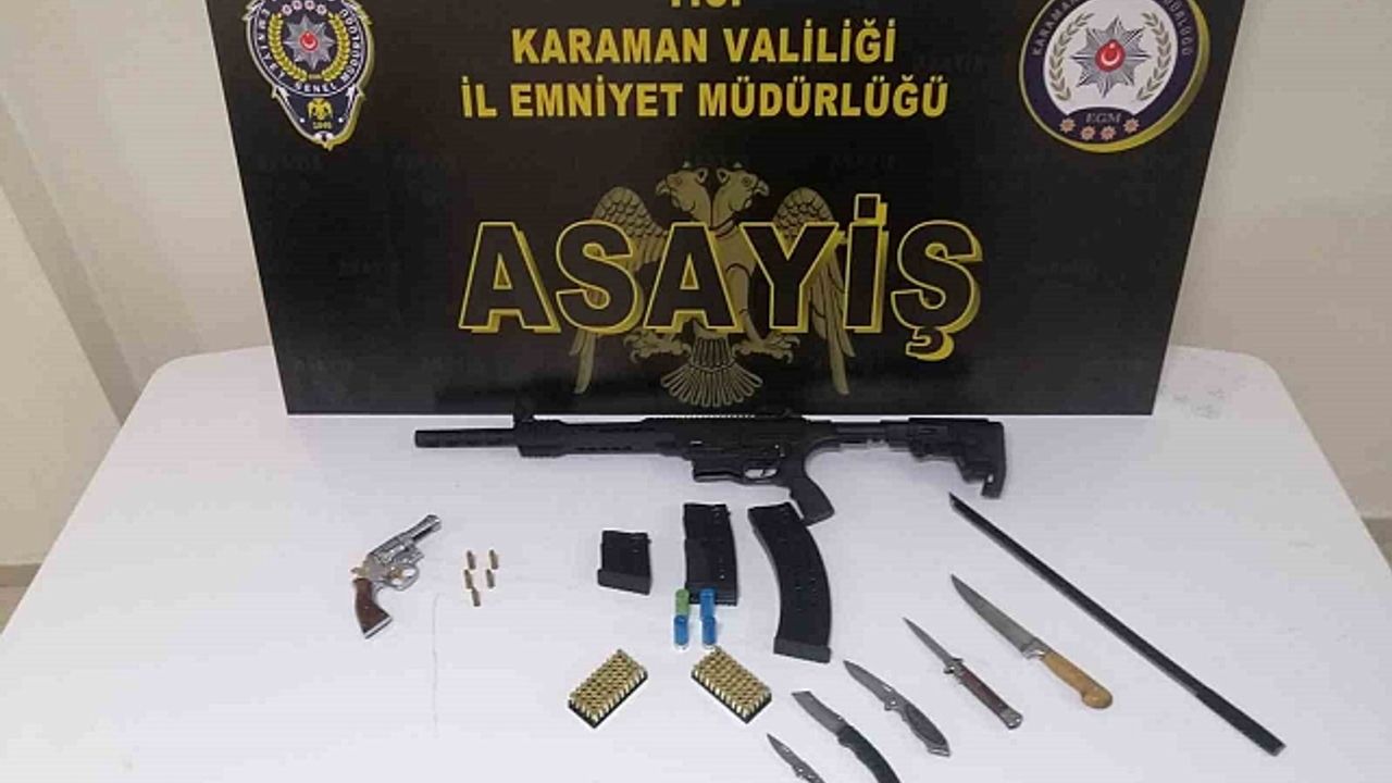 Karaman''da asayiş uygulamalarında uyuşturucu ve ruhsatsız silahlar ele geçirilirken, çeşitli suçlardan aranan 7 şahıs tutuklandı.