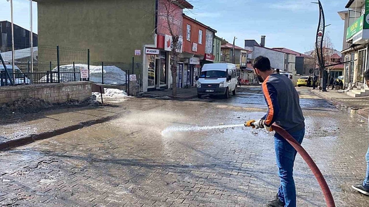 Bingöl''ün Karlıova ilçesinde, baharın yüzünü göstermesi ile birlikte belediye ekipleri sokakları yıkayarak temizledi.
