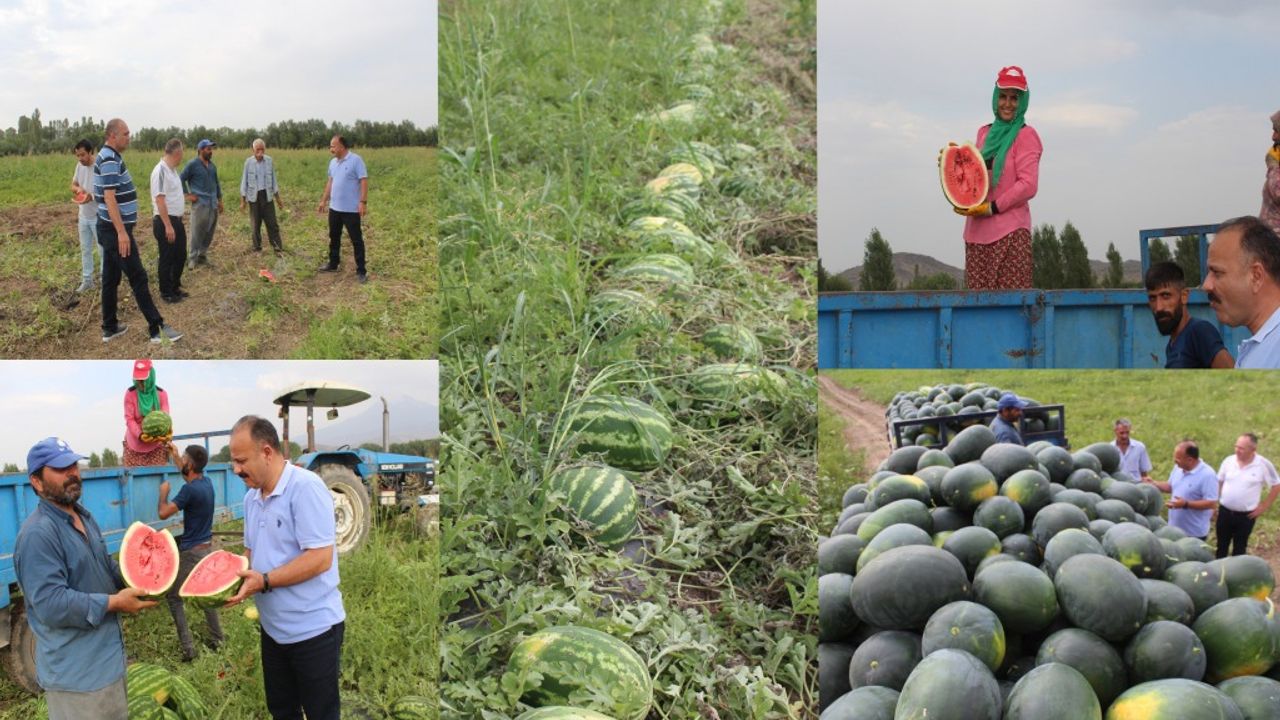 Hasadı devam etmekte olan karpuz da İlimiz tarımında hatırı sayılır bir yere sahiptir. Hasadı yapılmakta olan karpuz tarlasını ziyaret eden İl Tarım ve Orman Müdürü Özkan YOLCU"da hasat yapmakta olan çiftçilerimize yardım ederek incelemelerde bulundu ve tarla sahibi ve çalışanlar ile sohbetler etti. Tarladaki yüksek kalite ve ürün bolluğundan memnuniyetini dile getiren İl Müdürü Özkan YOLCU; “Emek vermeden ve bu kızgın güneşin zorluğuna katlanmadan böyle kaliteli ürünler elde etmek imkansızdır. Dekara 7 ile 9 ton arasında ürün alma başarısını gösteren tarla sahibine ve gerekse tarım sektöründeki bütün işçilerimize kolaylıklar diliyorum. Allah emeğin karşılığını kuşkusuz her zaman verir. Hasat yapmakta olan bütün çiftçilerimize kolaylıklar, bereketli ve bol kazançlar diliyorum” dedi.