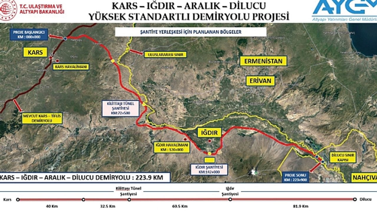 Yüksek standartlı demir yolu hattının ana yüklenicileri olan Kalyon ve Cengiz İnşaat, projenin şantiye merkezini Iğdır"da kurarak çalışmalara yoğunlaştı. Bunun yanı sıra, Kars"tan Dilucu"na kadar toplam dört şantiye daha kurularak inşaatın beş yıl içinde tamamlanması hedefleniyor. Projenin tamamlanmasının ardından Dilucu"ndan Kars"a ulaşım sadece 85 dakika sürecek.
