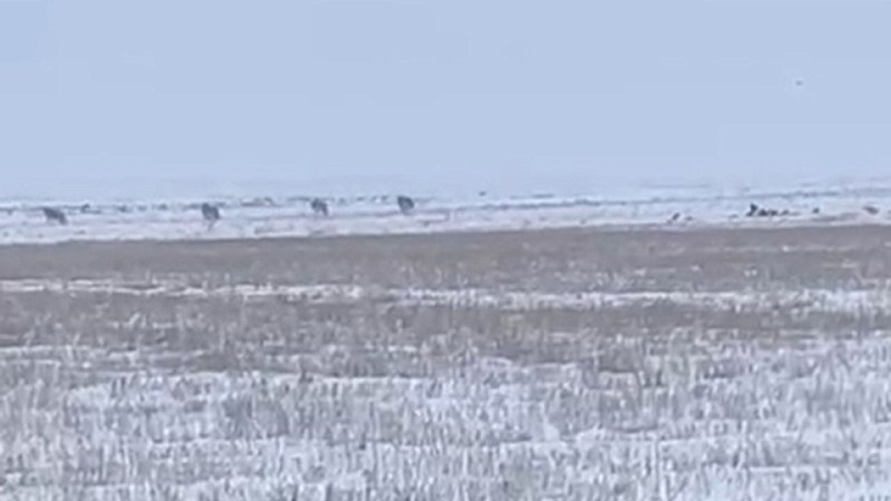 Kars''ın Akyaka ilçesinde köylere inen kurt sürüsü cep telefonuyla kaydedildi.