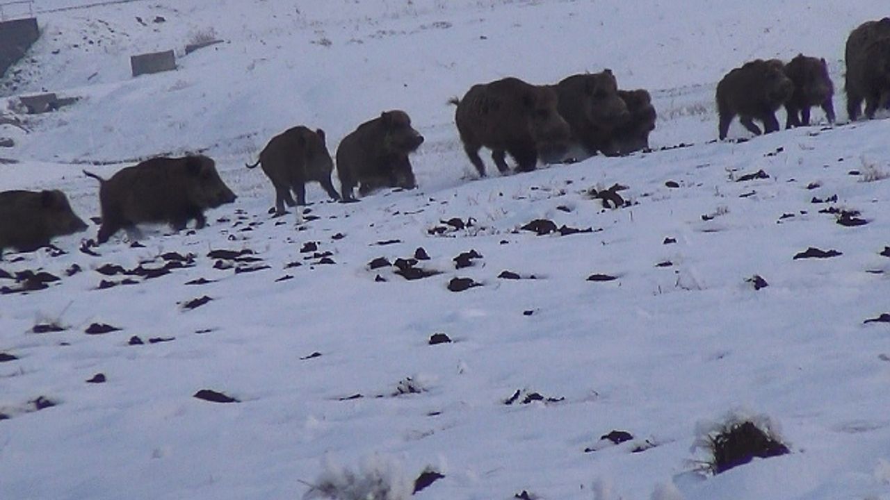 Karlı arazide yaklaşık 2 kilometre yürüyerek domuz sürüsüne yaklaşan gazeteciler, onlarca domuzu görüntüledi. Bir anda gazetecilerin üzerine doğru koşmaya başlayan domuz sürüsü daha sonra yön değiştirerek ters istikamete doğru koşmaya başladı. Sürü daha sonra gözlerden kayboldu.