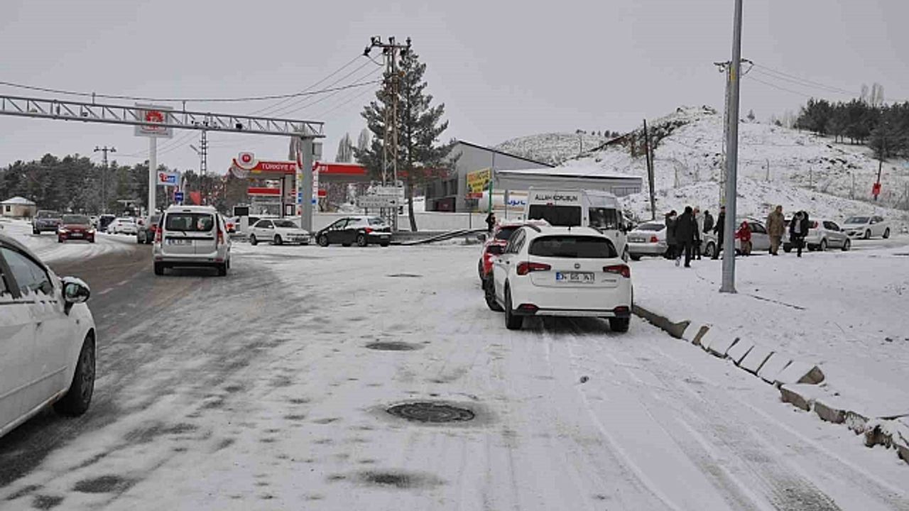 Onlarca araç kayarak yol kenarında mahsur kalırken, köylerdeki görev yerlerine gitmeye çalışan öğretmenler ise zor anlar yaşadı. Kayan araçlarını yol kenarına bırakan öğretmenler, uzun süre yetkililerin buz tutan yolu kumlamasını bekledi.