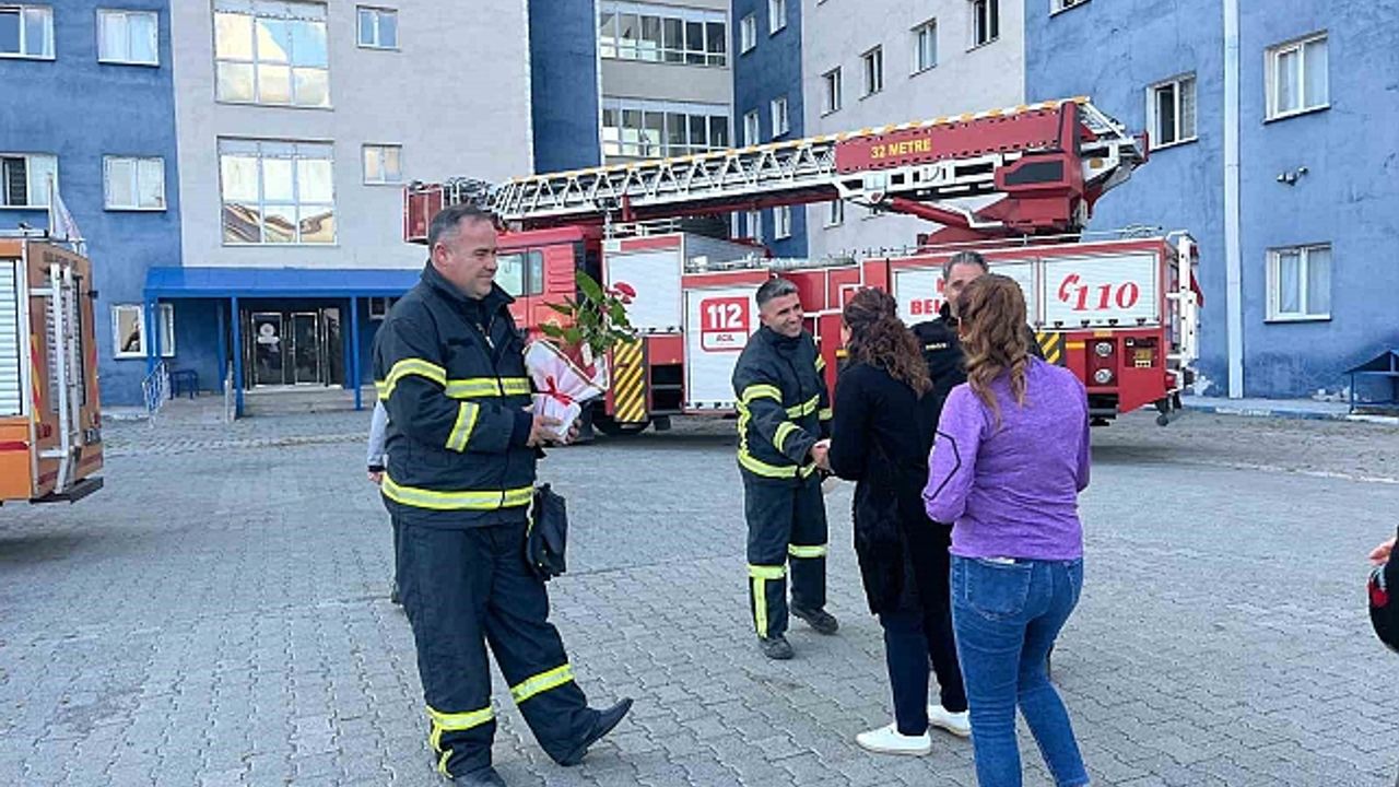 Bunun üzerine harekete geçen İtfaiye Müdürlüğü bölgeye hızlı bir şekilde itfaiye gönderdi. Bölgeye gelen itfaiyecileri alkışlarla karşılayan öğrenciler, itfaiye şefine çiçek vererek itfaiyecilerin İtfaiye Haftası''nı kutladılar. Önce şaşıran daha sonra mutlu olan itfaiyeciler, kız öğrencilerin hazırladıkları tatlı ve pastadan tattı, çay içerek öğrencilerle sohbet etti. Öğrencilere teşekkür eden itfaiyeciler daha sonra bölgeden ayrıldı.