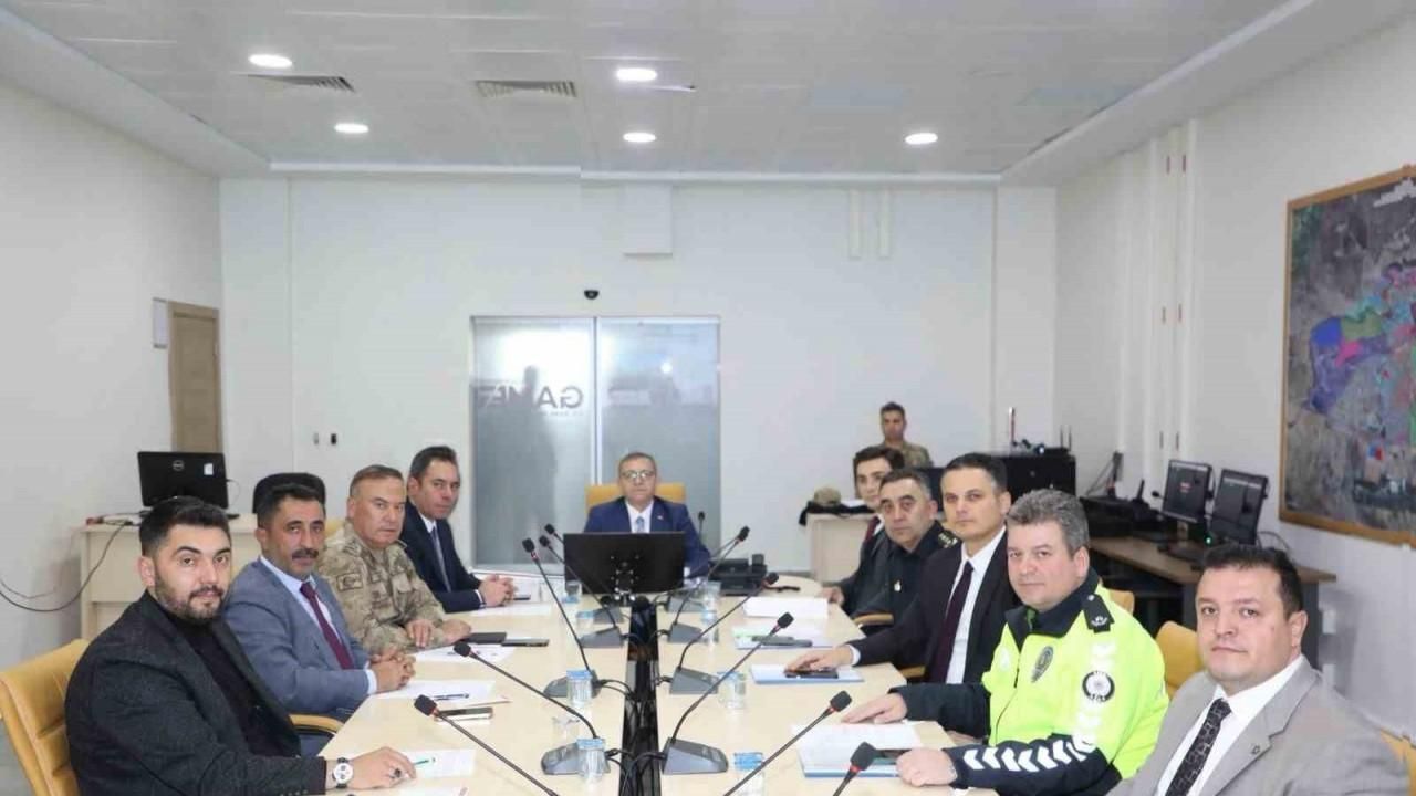 Vali Ziya Polat başkanlığında düzenlenen toplantıya Vali Yardımcısı Hayrettin Buğra Güzeli, Karayolları 18. Bölge Müdürlüğü, İl Emniyet Müdürlüğü, İl Jandarma Komutanlığı, İl Özel İdaresi ve belediye temsilcileri katıldı.