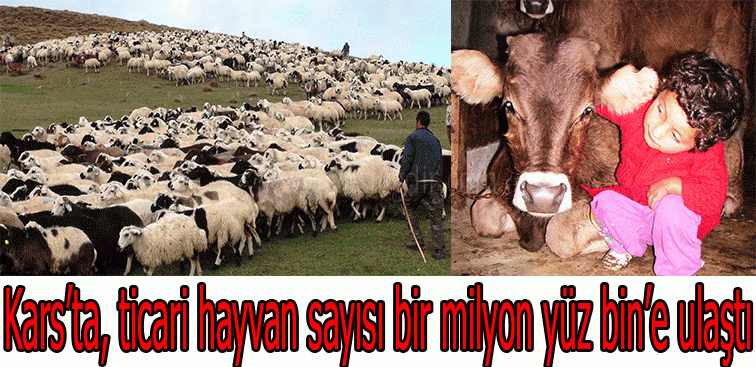 Öte yandan TUİK Kars, Ardahan, Ağrı ve Iğdır Bölge Müdürü Adnan Bedlek yayınladığı açıklamada, 2015 yılı Kasım ayı itibariyle Kars"ta sığır sayısının 442 Bin 549, koyun sayısının 531 bin 704 ve keçi sayısının ise 35 Bin 444 adet olduğunu belirtti. Böylece Kars"taki toplam ticari hayvan sayısı Bir Milyon Yüz Bin"e ulaştı.