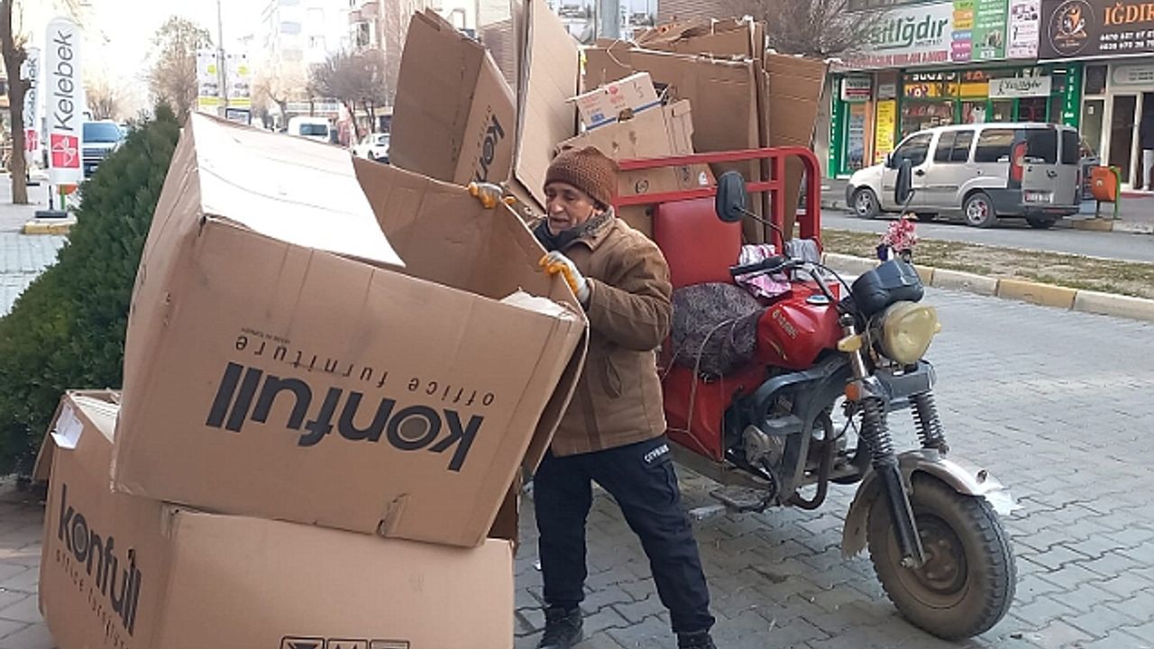 Üç yıldır karton toplayarak hayatını idame ettirdiğini belirten Kaya, daha önce inşaatlarda çalıştığını ancak çocuklarını evlendirdikten sonra eşiyle yalnız kaldığını söyledi. Yaşı nedeniyle artık inşaatlarda çalışmasının mümkün olmadığını belirten Kaya, “Artık sokaklardan karton toplayarak evimi geçindirmeye çalışıyorum” dedi.