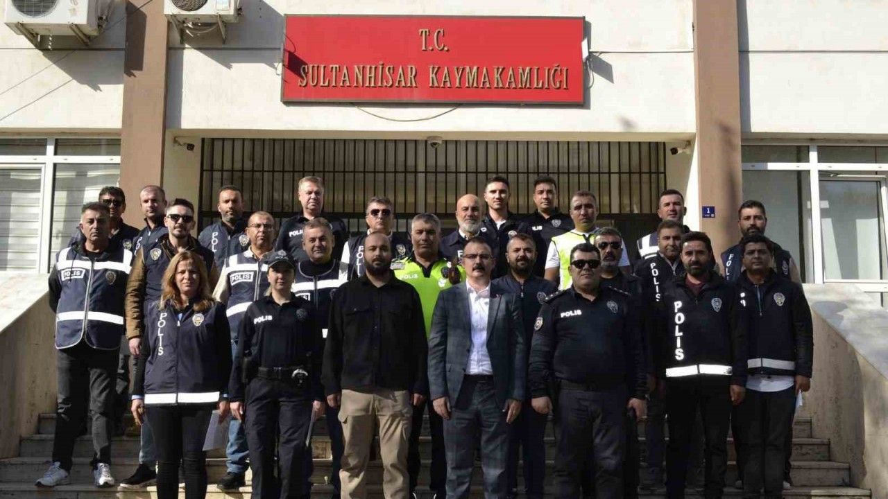 Aydın’ın Sultanhisar ilçesinde, kamu düzeninin sağlanması ve yürütülen başarılı operasyonlarda gösterdikleri üstün gayret nedeniyle emniyet personelleri Kaymakam Ali Ekber Ateş tarafından takdir belgesiyle ödüllendirildi.