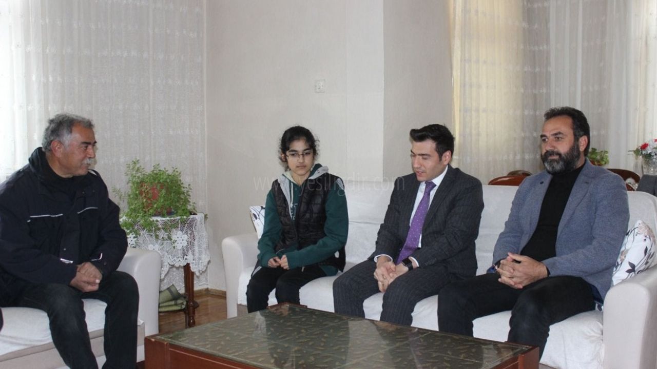 Kaymakam Furkan Atalık, başarılı öğrenci Rugayye Çalışkan"ı kutlayarak başarılarının hayat boyu devam etmesi temennisinde bulundu.