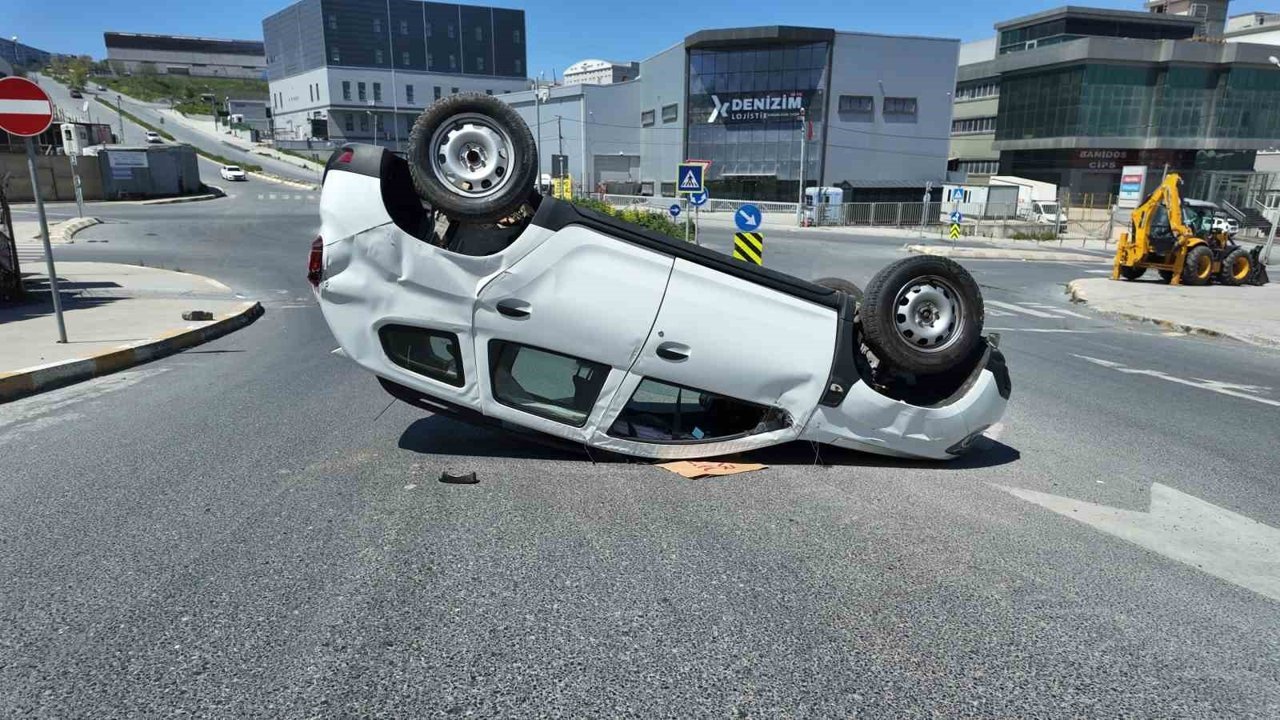 Esenyurt'ta süratle geldiği iddia edilen sürücünün çarptığı otomobil takla attı. Yaşanan kazada, takla atan otomobilin sürücüsü yara almadan kurtuldu.