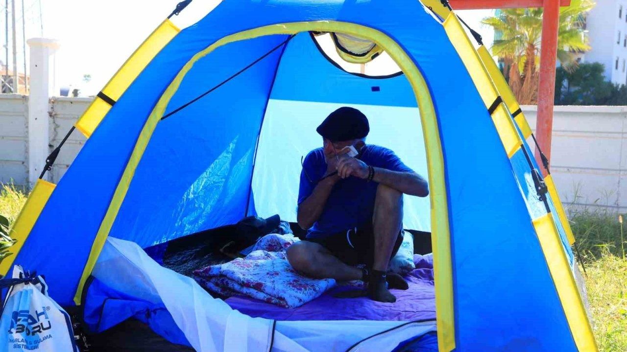 Parkta çadıra yaşamaya başladı