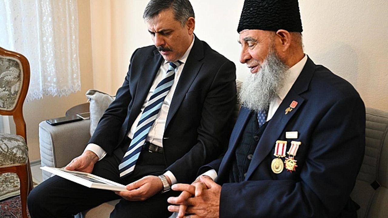 Erzurum Valisi Mustafa Çiftçi, Kıbrıs Gazisi Hilmi Kırtepe''yi evinde ziyaret etti.