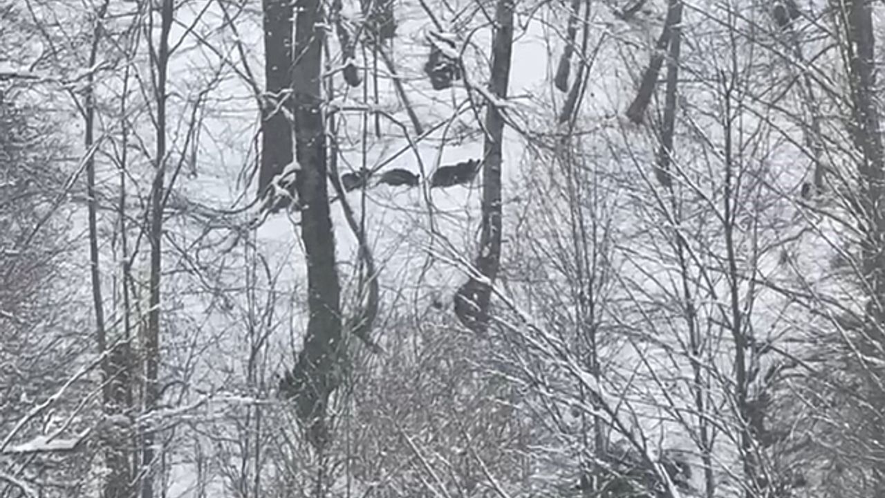 Düzce''nin yüksek kesimlerinde Şubat ayında yağan karla birlikte tam anlamıyla kara kış yaşanırken kış uykusuna daha yatmayan ayılar dikkat çekti. Karla kaplı dağın ormanlık alanında anne ayı ve iki yavrusuyla Off-Road yapanların karşısına çıkması dikkat çekti.