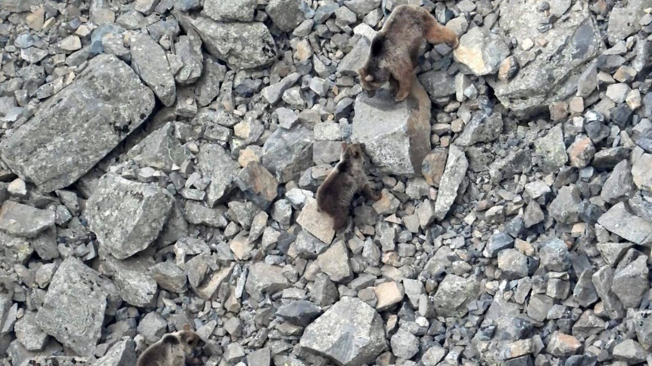 Erzurum'un İspir ilçesinde kış uykusundan uyanan ayı ailesi kameralara yansıdı.