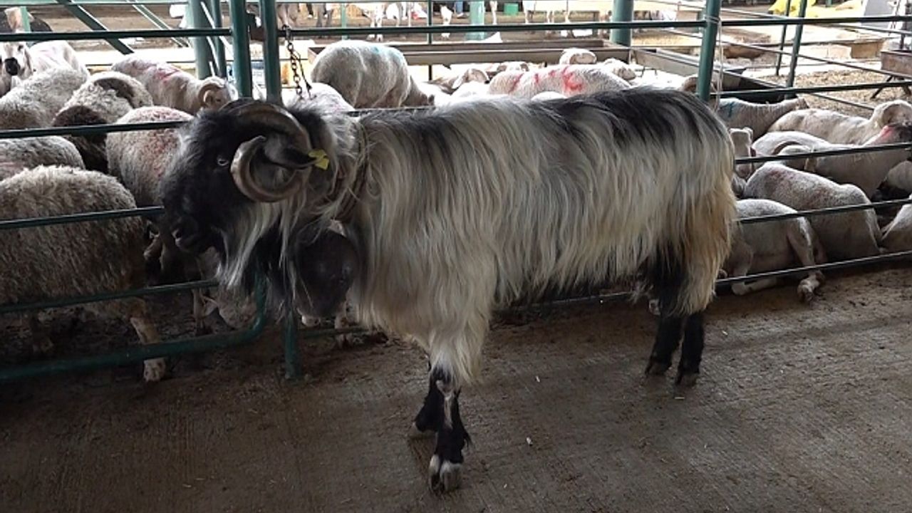 Eskişehir Büyükşehir Belediyesi Hayvan Pazarı''nda satışa sunulan 100 kilodan fazla ağırlığı olan ''Kocaoğlan'' isimli keçi, 50 bin lira verecek müşterisini bekliyor.