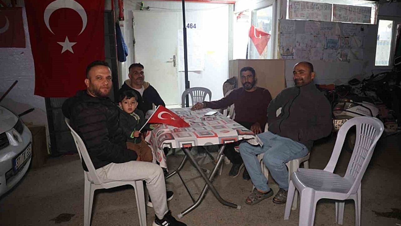 Hatay''da kavga ihbarında bulunarak polis ekiplerine sürpriz yapan konteyner kent sakinleri, pasta keserek bayraklı karşılama yaptı.