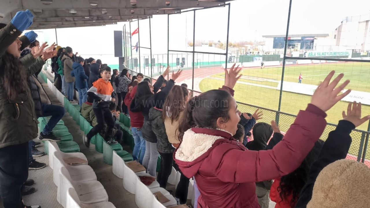 Maçın başlamasıyla birlikte müsabakayı heyecanla takip eden öğrenciler, Alagöz Holding Iğdır Spor"un ikinci yarı gelen golleriyle Bayrampaşaspor"u 2 -0 yendi. Gol sevinci ile öğrenciler büyük bir mutluluk yaşadı.