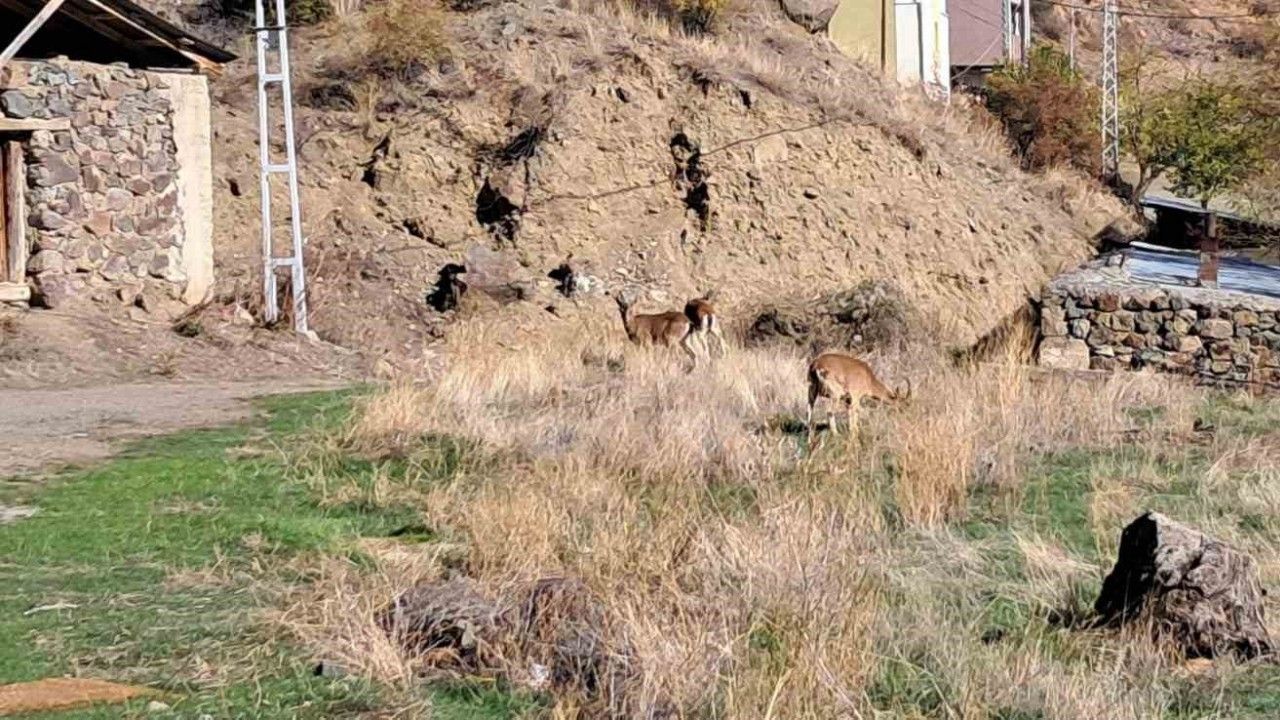 Erzurum’un Olur ilçesi Ormanağzı köyünde, yaban keçileri köy içine kadar girerek evlerin arasında ve bahçelerde özgürce otluyor.