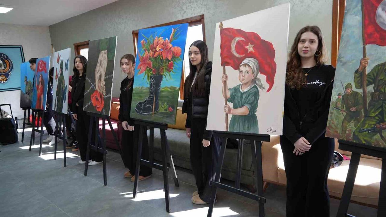EMŞAV ve özel bir okul tarafından düzenlenen resim sergisinde, 18 lise öğrencisi 18 adet yağlı boya eseriyle şehit temasını işledi. Öğrenciler, öğretmenleri Başak Murzoğlu Albar eşliğinde sergilerini EMŞAV dernek binasında açtı.
