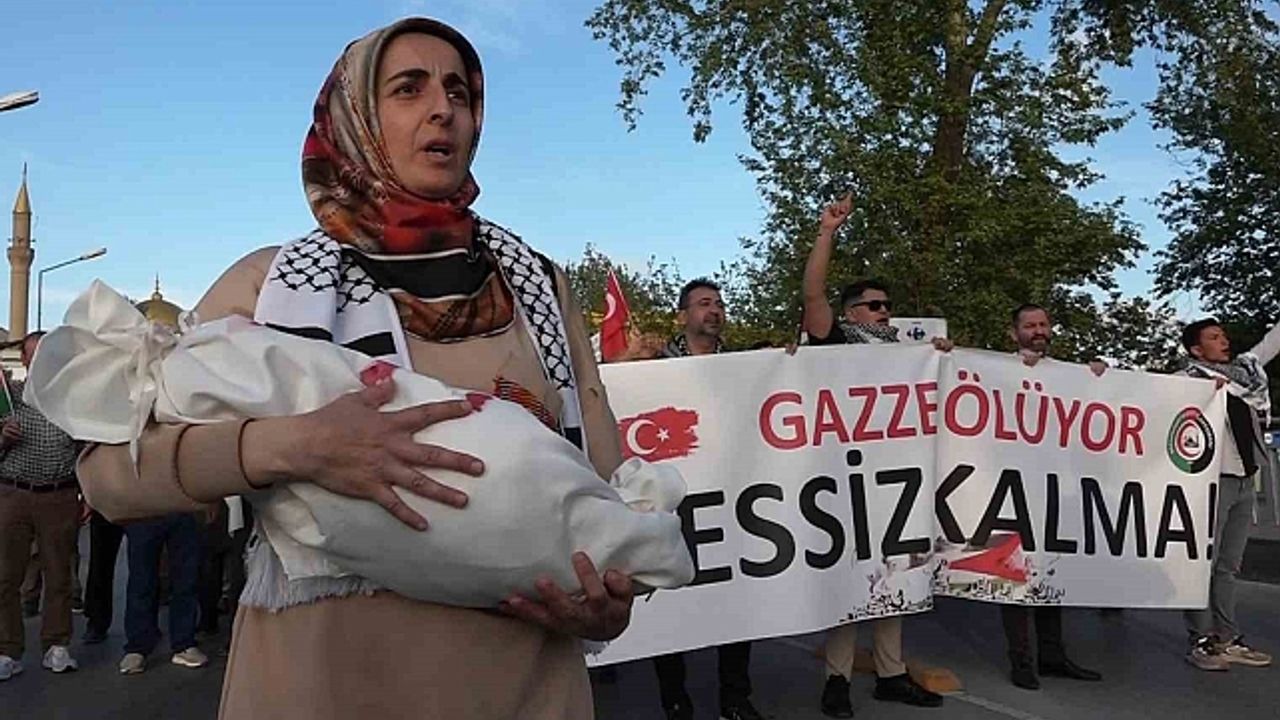 Manavgat Kudüs Platformu''nun çağrısıyla Manavgat Belediyesi Atatürk Kültür Merkezi önünde toplanan yaklaşık bin 500 kişi Cumhuriyet Meydanı''na yürüdü. İsrail aleyhine sloganlar atan kalabalık taşıdıkları dövizlerle yürüyüş boyunca Filistin halkıyla dayanışma mesajları verdi. Protesto yürüyüşünde kadınların ve çocukların yoğun katılımı dikkat çekti. Çocukların Gazze''de hayatını kaybeden bebekleri simgeleyen bebek kundakları taşıması yürekleri burktu. Cumhuriyet Meydanı''nda yapılan basın açıklamasının ardından grup dualar eşliğinde dağıldı.
