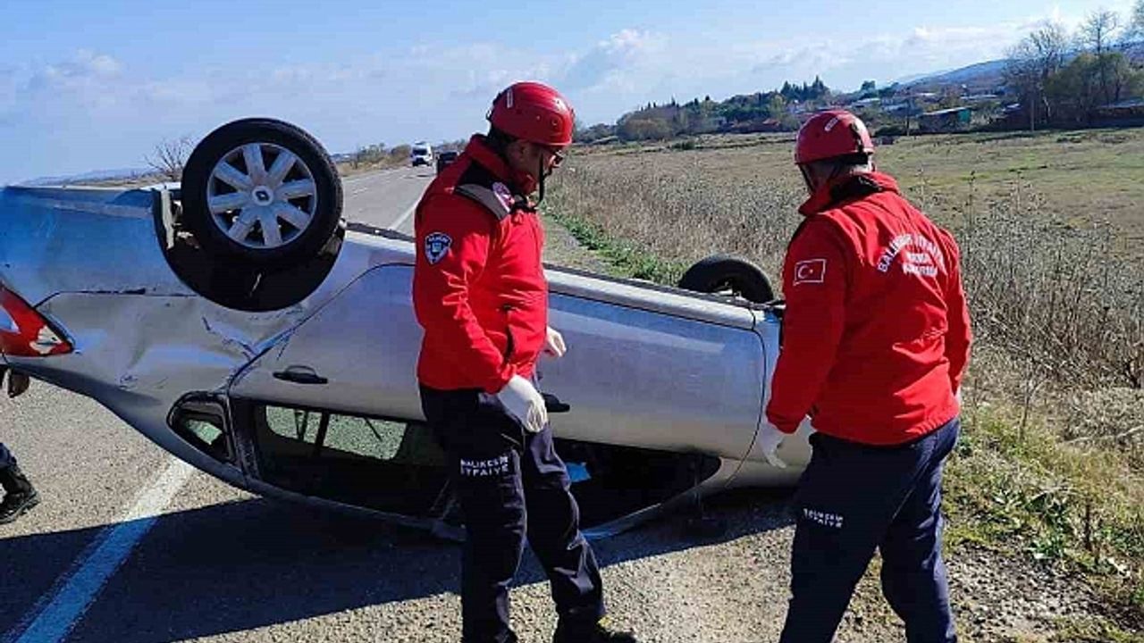 Kaza, Gönen yolu Hamamlı Mevkisi''nde meydana geldi. Bir otomobil ile kamyonet çarpıştı. Otomobil çarpmanın etkisiyle takla atarken sürücü C.M. yaralandı. Olay yerine sevk edilen Balıkesir Büyükşehir Belediyesi İtfaiye Daire Başkanlığı ekipleri yaralıyı hastaneye sevk etti. Diğer sürücü M.K.''nın durumunun ise iyi olduğu bildirildi.