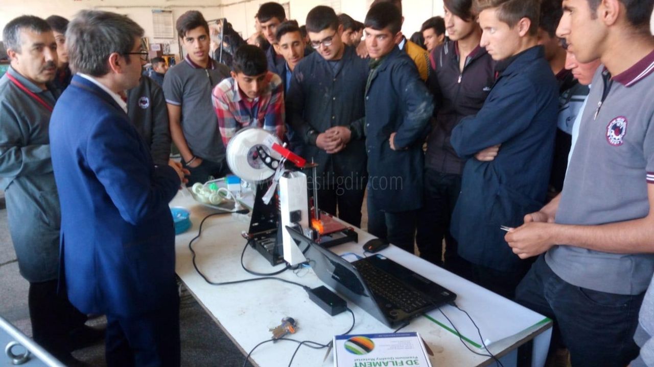 Topluluk Danışmanı Öğr. Gör. Murat Şimşek, yaptığı bilgilendirmeden dolayı Alagöz"e teşekkür ettikten sonra MERT olarak üniversitede yürüttükleri projeleri anlattı. Atölyeye gruplar halinde gelen meslek lisesi öğrencilerine ve bölüm öğretmenlerine, demo ürün basımı yapan 3D yazıcı üzerinde çalışma prensipleri ve kullanım alanları hakkında bilgiler verdi.  Robotik teknolojisi üzerine konuşan Şimşek, örnek Otto Robotları tanıttı. 3D yazıcının çalışmasını izleyen ve anlatılanları takip eden öğrenciler çeşitli sorular sorarak yeni teknolojilere olan ilgi ve meraklarını gösterdiler.