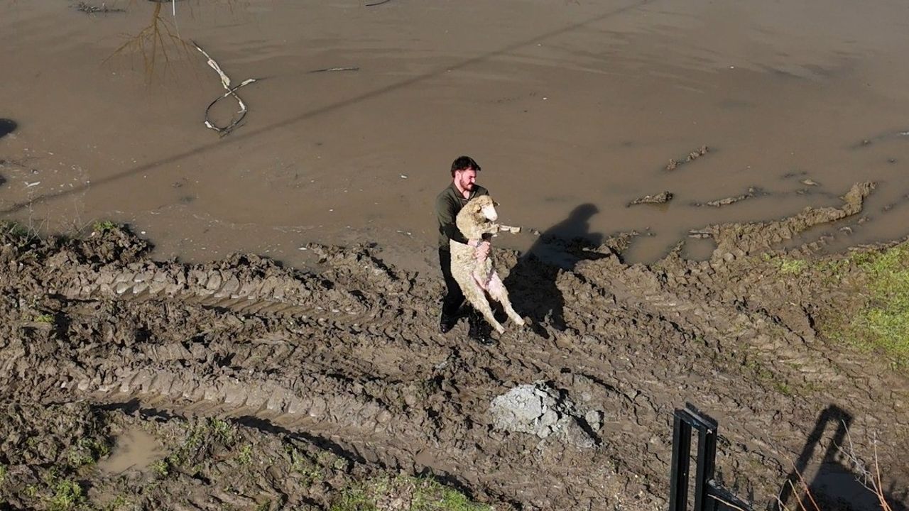 Meriç Nehri'nin taşmasıyla Edirne'de tarım arazileri ve yerleşim alanları sular altında kalırken, AFAD ekipleri mahsur kalan hayvanları tahliye etti, çiftçiler ise mallarını kurtarmak için zamanla yarıştı.