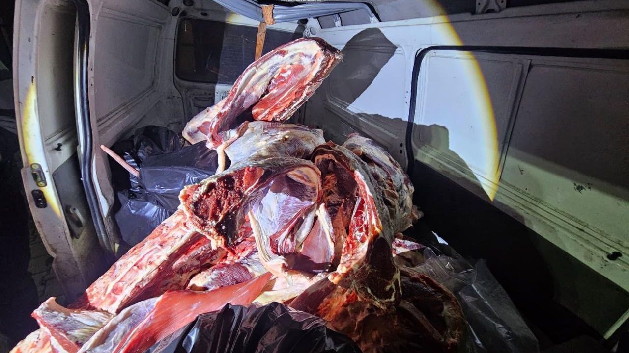 Hatay’da jandarma ekipleri tarafından durdurulan araçta menşei belirsiz 1 ton kırmızı et ele geçirildi.