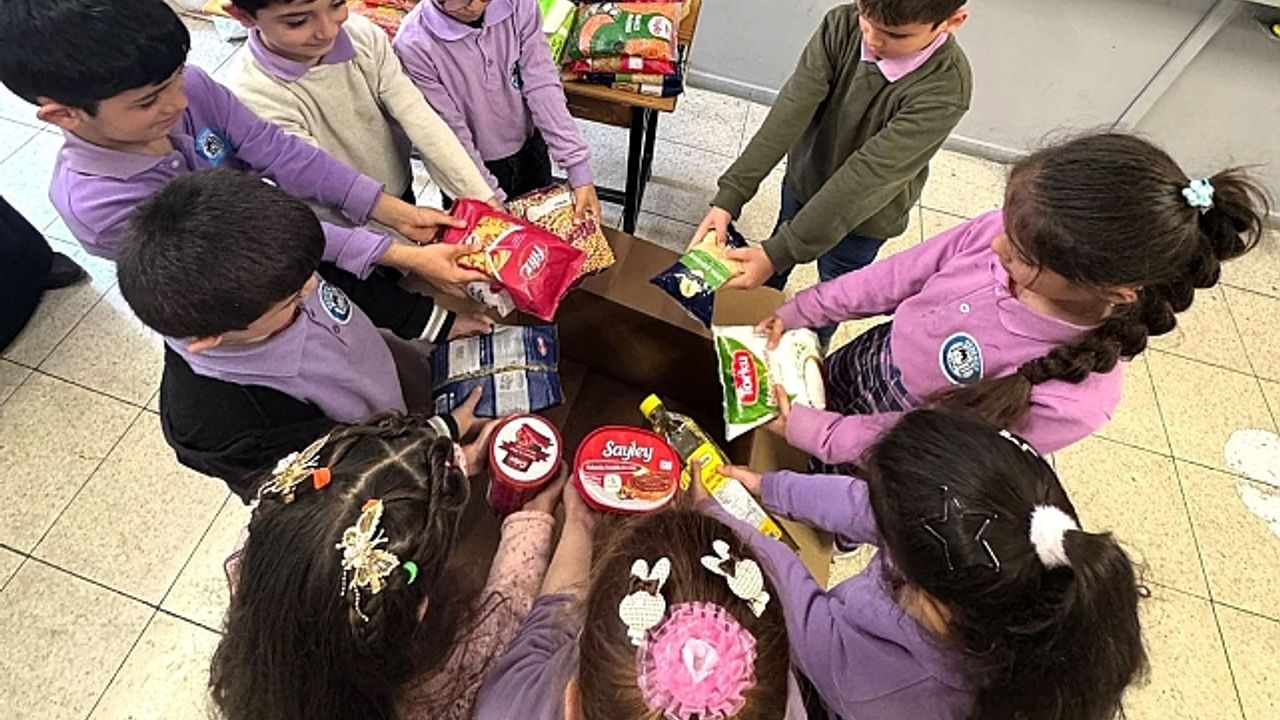 İzmir''de ilkokul öğrencileri, kendi imkanlarıyla okula getirdikleri gıda ürünleriyle Ramazan kolisi hazırladı. Koliler ihtiyaç sahiplerine ulaşırken, miniklerde de paylaşma ve yardımlaşma bilincinin oluşması sağlandı.