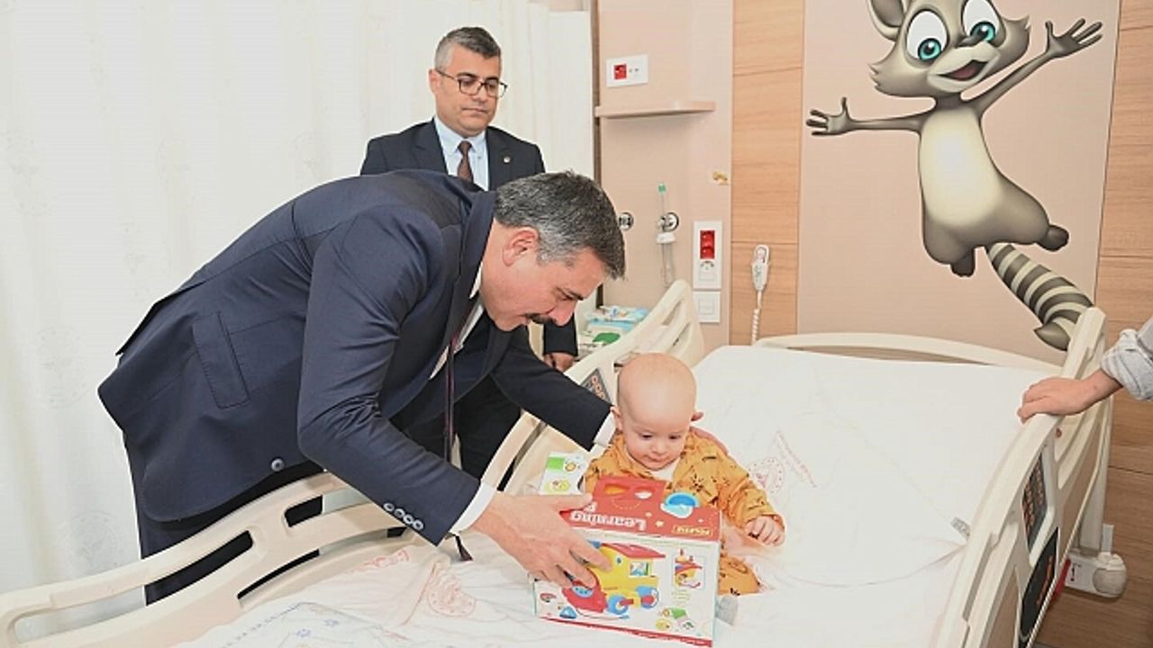 Erzurum Valisi Mustafa Çiftçi, Şehir Hastanesi Çocuk Servisi''nde tedavi gören minik hastaları ziyaret ederek onlara moral verdi.
