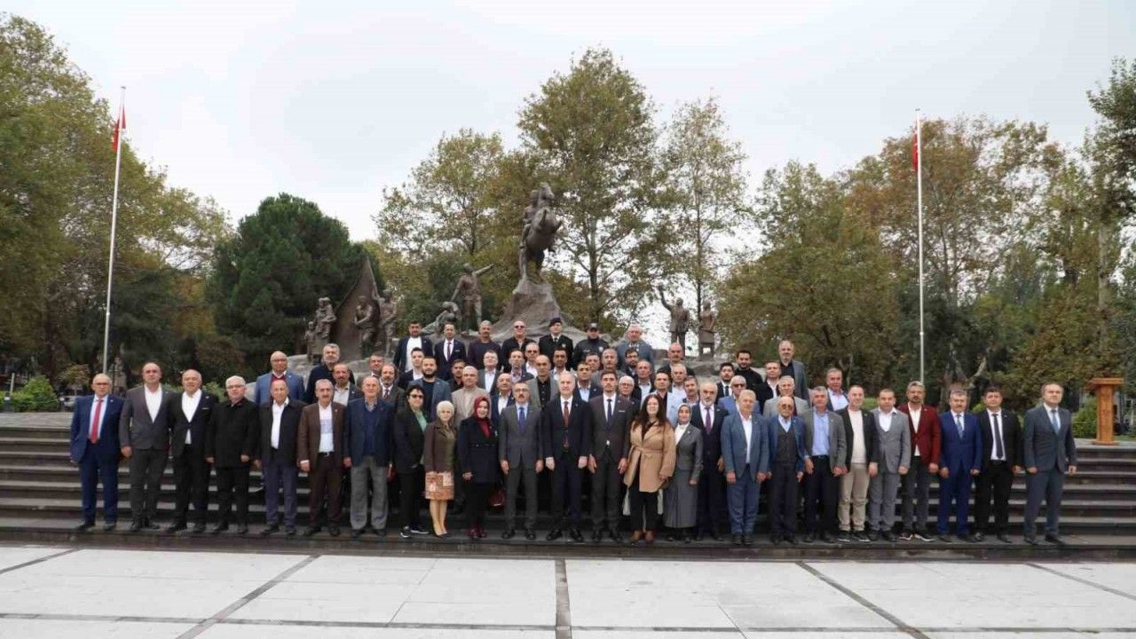 Saygı Duruşu ve İstiklal Marşının okunmasıyla başlayan törende, Muhtarlar Derneği Başkanı Oktay Garip anıta çelenk sunumunu yaptı. Ardından günün anlam ve önemine ilişkin bir konuşma yapan Oktay Garip, "Muhtarlık müessesesi 1829’dan günümüze bu topraklarda aziz milletimize hizmetini sürdürmektedir. Genel ve yerel sorunların ilgili kurum ve kuruluşlara iletilmesine köprü rolü oynayan muhtarlık müessesesi, Osmanlı’dan günümüze taşınan önemli bir yerel yönetim birimidir. Yerel yönetimlerin mihenk taşları olan köy ve mahalle muhtarlıklarımız vatandaşlarımızın ilk devlet ve hizmet kapısıdır. Muhtarlarımız köylerimizde ve mahallelerimizde özveriyle çalışmış, devletimizin her zaman gören gözü, işiten kulağı olmuştur. Her geçen gün büyüyen bu güzel şehirde milletimizden aldığımız güçle 116 muhtarımız ile görevimizi yerine getirmekte, milletimizin acısıyla hüzünlenip, derdiyle dertlenip, sevinciyle sevinmekteyiz. Muhtar siyasetten uzak, tarafsız, tamamen kendi kişiliğiyle toplumda kabul görmüş halkın güvenoyu ile seçilmiş en önemli kanaat önderidir. Yerel yönetimin kılcal damarı ve demokrasinin temel taşıdır. Bu büyük camianın bir parçası olmaktan onur ve gurur duyuyoruz. Türkiye Cumhuriyeti Devletinin banisi Ulu Önder Gazi Mustafa Kemal Atatürk’ün demiş olduğu gibi; muhtar, demokrasinin temel taşıdır" dedi.