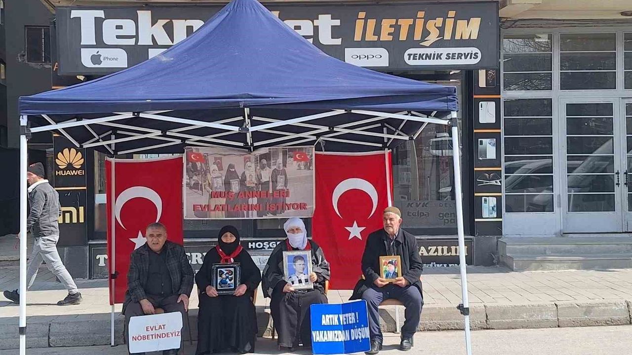 Muş'ta DEM Parti İl Başkanlığı önünde evlat nöbeti tutan aileler, çocuklarına teslim olmaları için çağrıda bulundu.