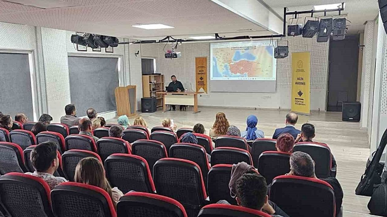 Program sonunda Şube Müdürü Sami Çetinaktı, sunumuyla öğretmenleri bilgilendiren Doç. Dr. Uğur''a teşekkür ederek plaket takdiminde bulundu.