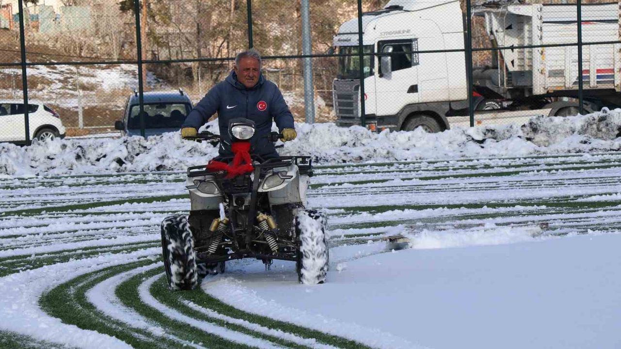 60 yaşındaki İbrahim Kara, bugün yağan kar yağışının ardından Oltu Stadyumu'nun zeminini tek başına temizleyerek görevine olan bağlılığını bir kez daha gösterdi. Mesleğini severek yaptığını belirten Kara, hayatını futbola adadığını ifade etti.