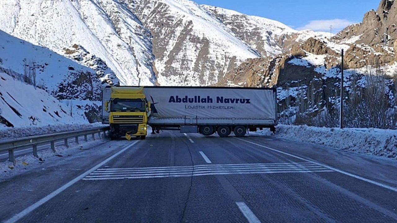 Edinilen bilgiye göre, Erzurum''dan Uzundere istikametine seyreden 38 ZL 969 plakalı Tır buzlanan yolda kayarak yolu trafiğe kapattı. Sürücünün direksiyon hakimiyetini kaybettiği Tır yolu trafiğe tamamen kapattı. Bariyerlere çarparak durabilen Tır''da sürücü kazayı yara almadan atlattı.