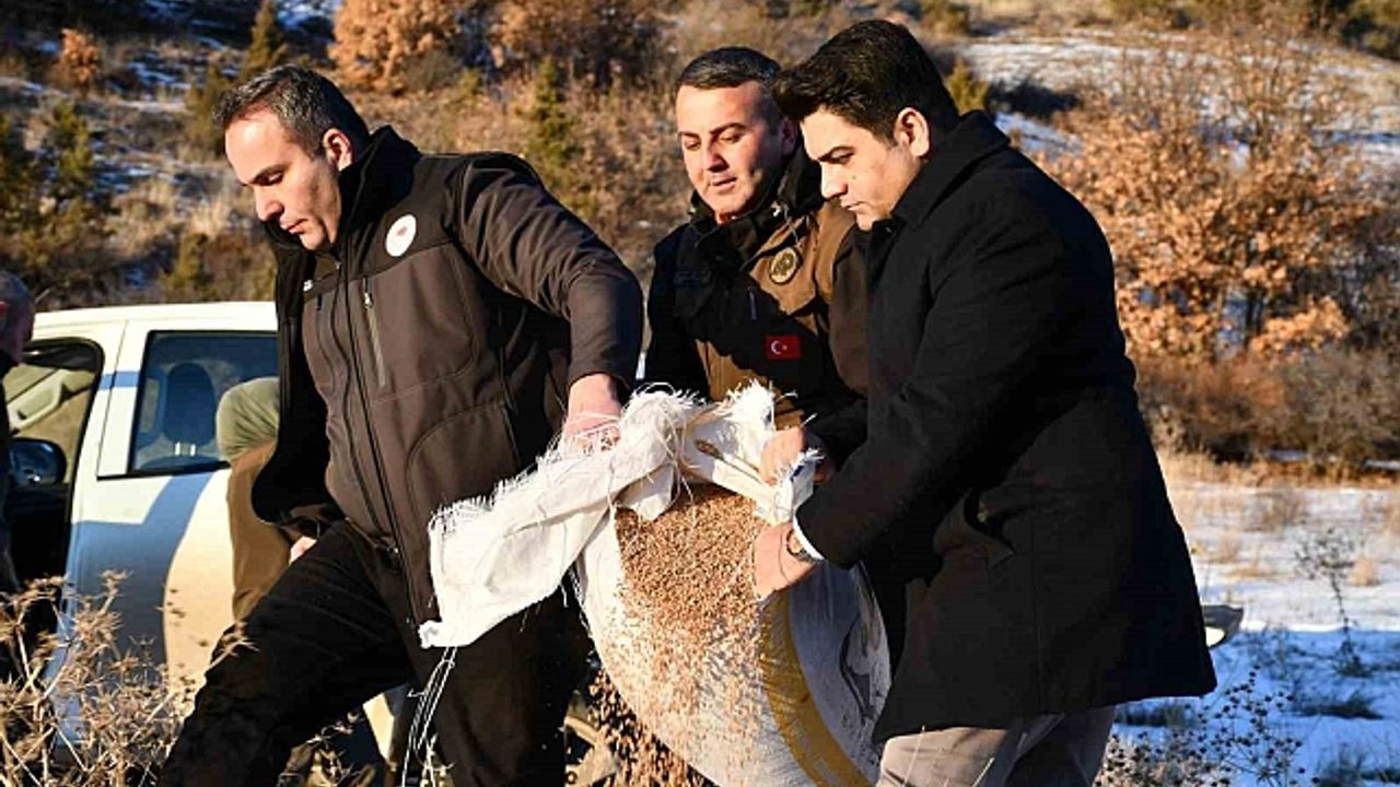Erzurum''a bağlı Olur ilçesi Kaymakamı Mehmet Kaan Kini, Olur Belediye Başkanı Vedat Ergün, Oltu Şefi Yusuf Haşhaş ve Olur İlçe Tarım ve Orman Müdürü Yaşar Mesut Bakır, Kaban Devlet Avlağında Yaban Hayatını Korumak için buğday ve ot dağıtımı gerçekleştirdi