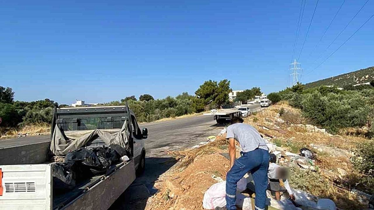 Muğla''nın Bodrum ilçesinde çöplerini yol kenarına atan şahıslar, kesilen cezanın ardından attıkları çöpleri geri topladı.